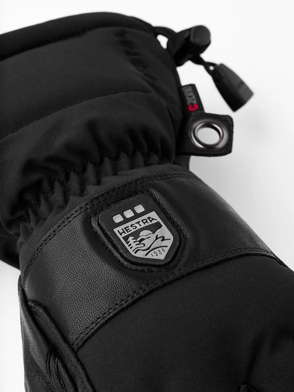 Waterproof and durable heated glove with long cuff. Suitable for those whose hands easily get cold. The heating elements are located at backhand on each fingertip, including the thumb. The heating control can be set in three steps, depending on the weather and temperature. Impregnated goat leather in palm and Hestra Flextron softshell on backhand. Includes Rechargeable / replaceable batteries, charger and handcuffs. Heat duration: Low: 8-10h – Medium: 4-5h – High: 2h IMPORTANT NOTICE! The electronic components of this glove may interfere with avalanche transceivers.