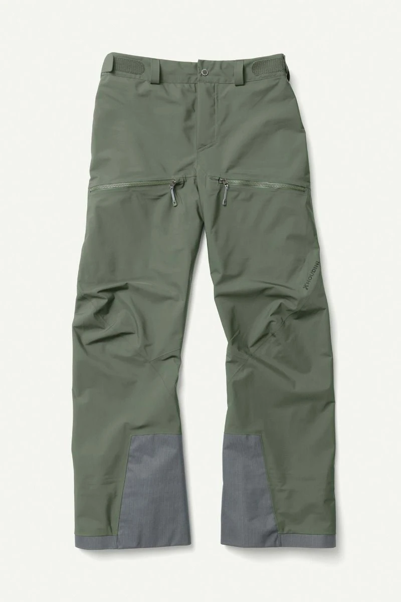 The leg endings are reinforced with Schoeller® and equipped with snow gaiters. The waist has velcro adjustments. To get in and out of them easily and for quick ventilation, Purpose Pants have ¾ zippers on the outside of the legs.