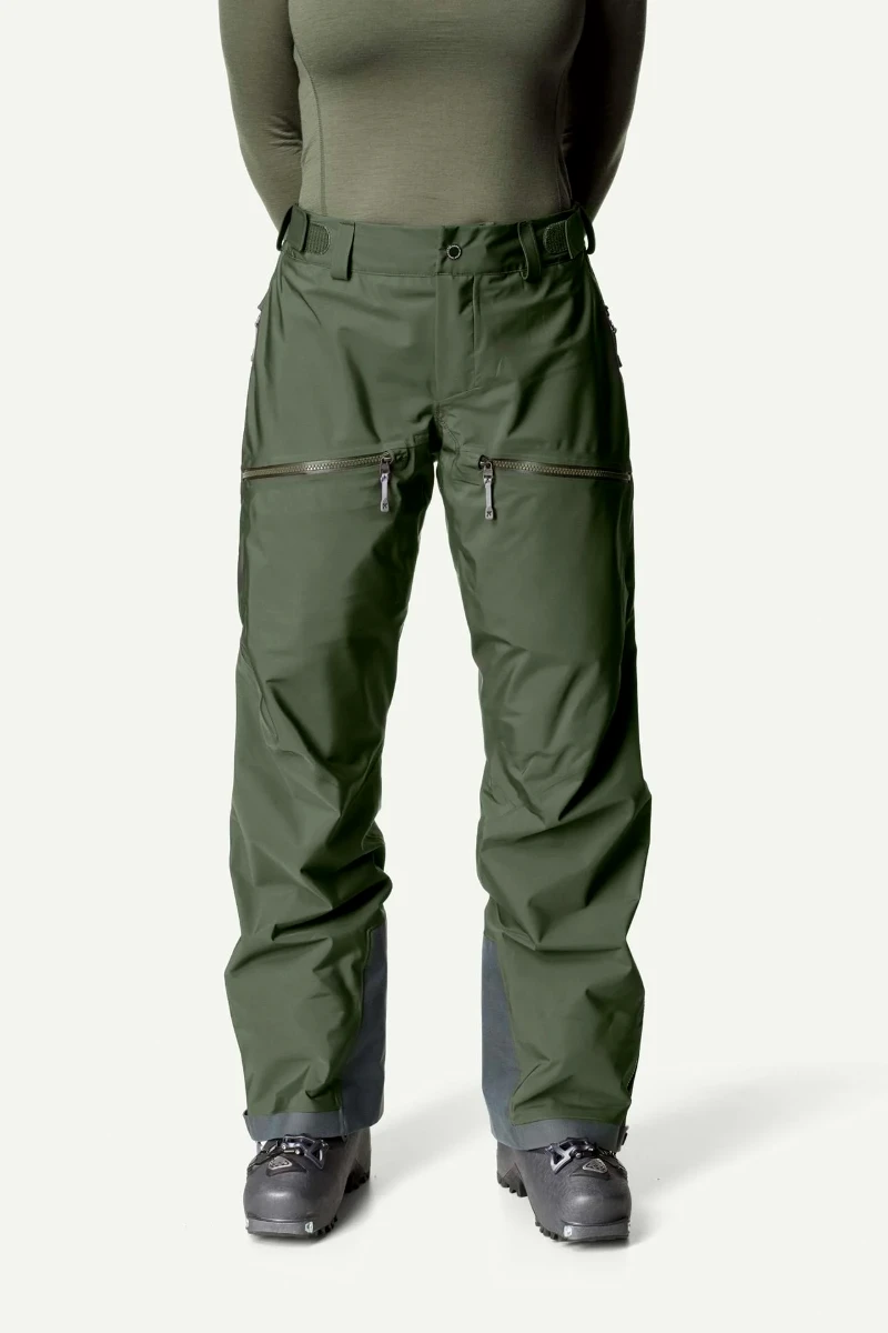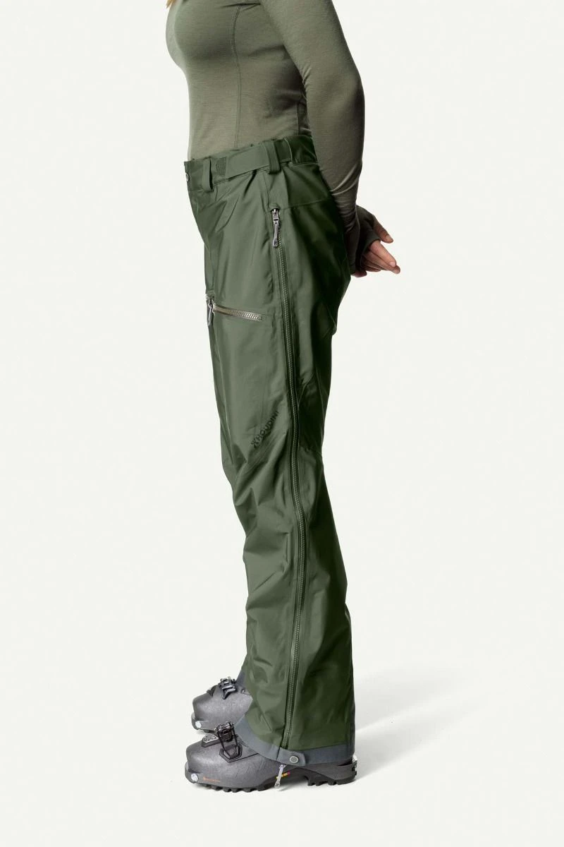 Purpose pants have ¾ zippers on the outside of the legs, for ventilation and to get in and out of them easily. The leg endings are reinforced with Schoeller® fabric and have snow gaiters. The waist is adjustable with velcro.