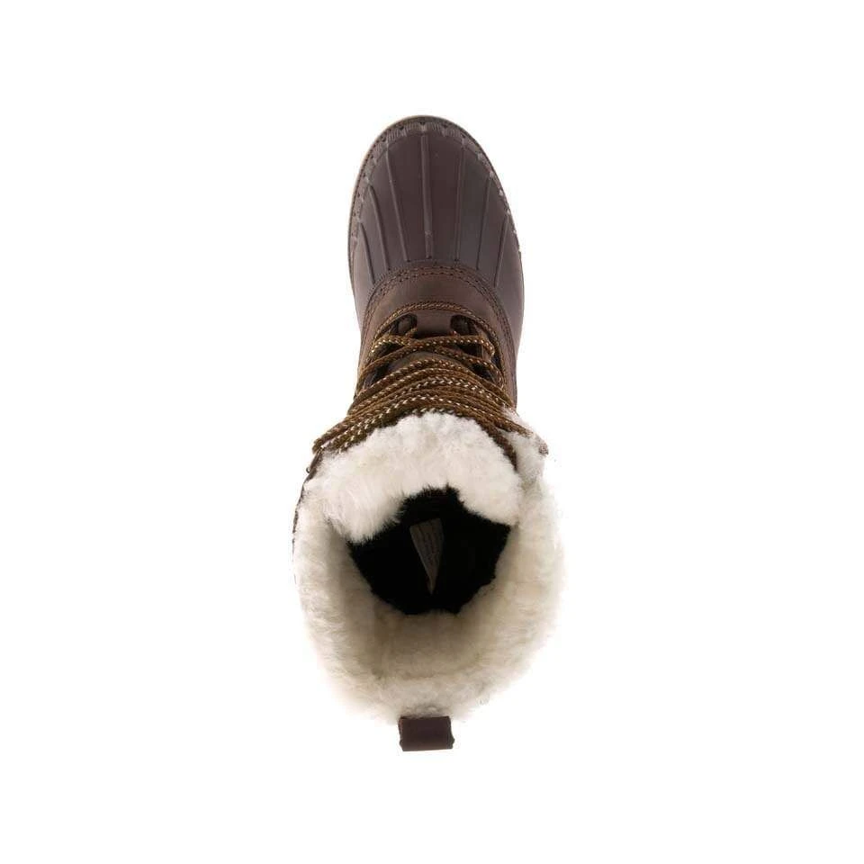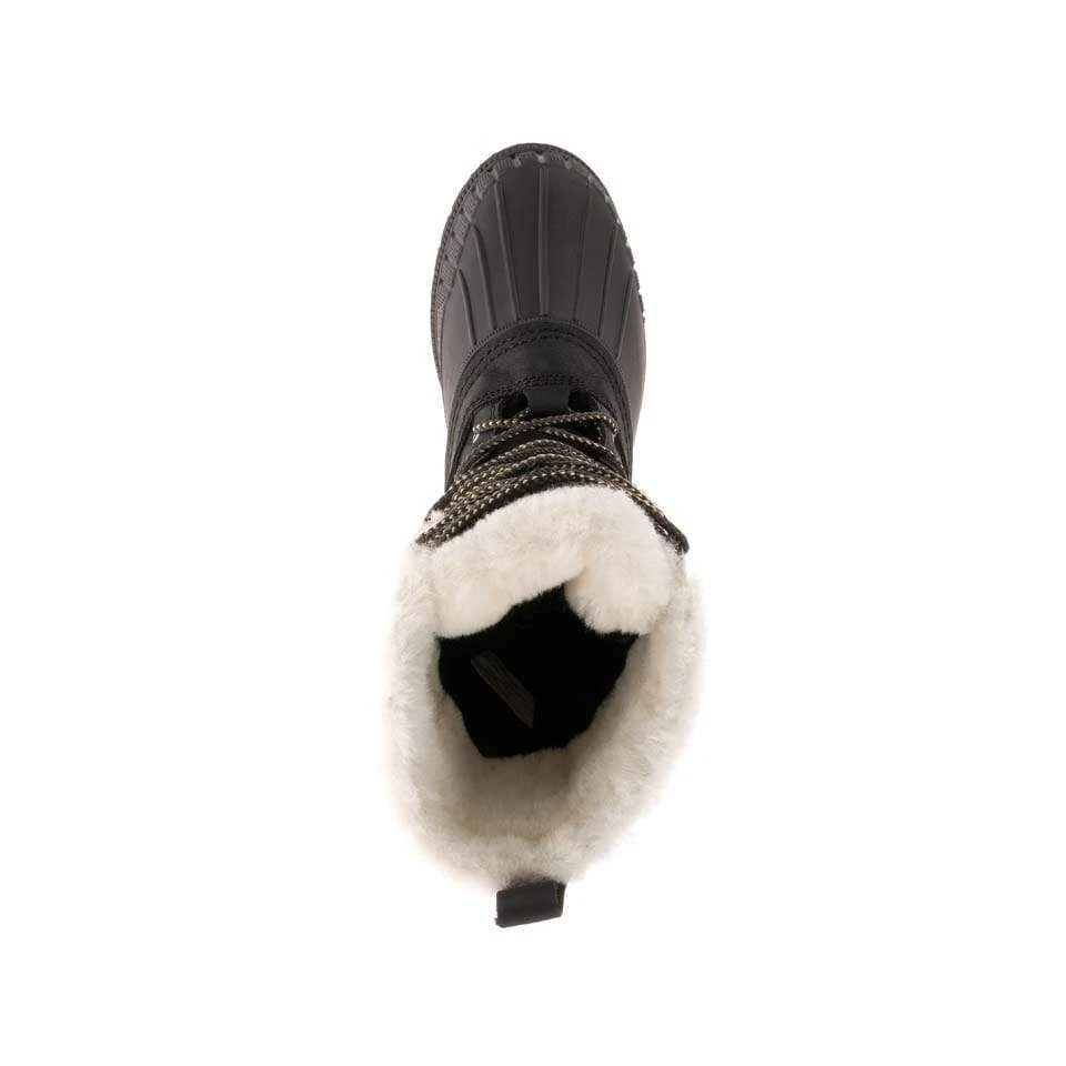 - Upper – Seam-sealed waterproof genuine buffalo leather upper with genuine shearling collar