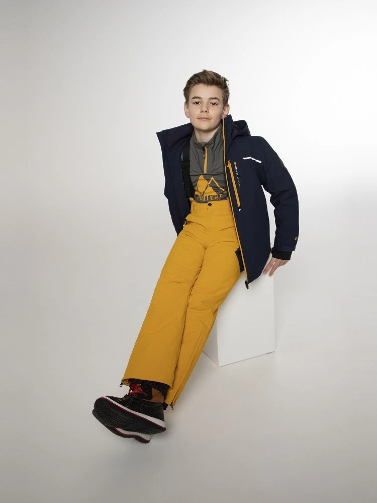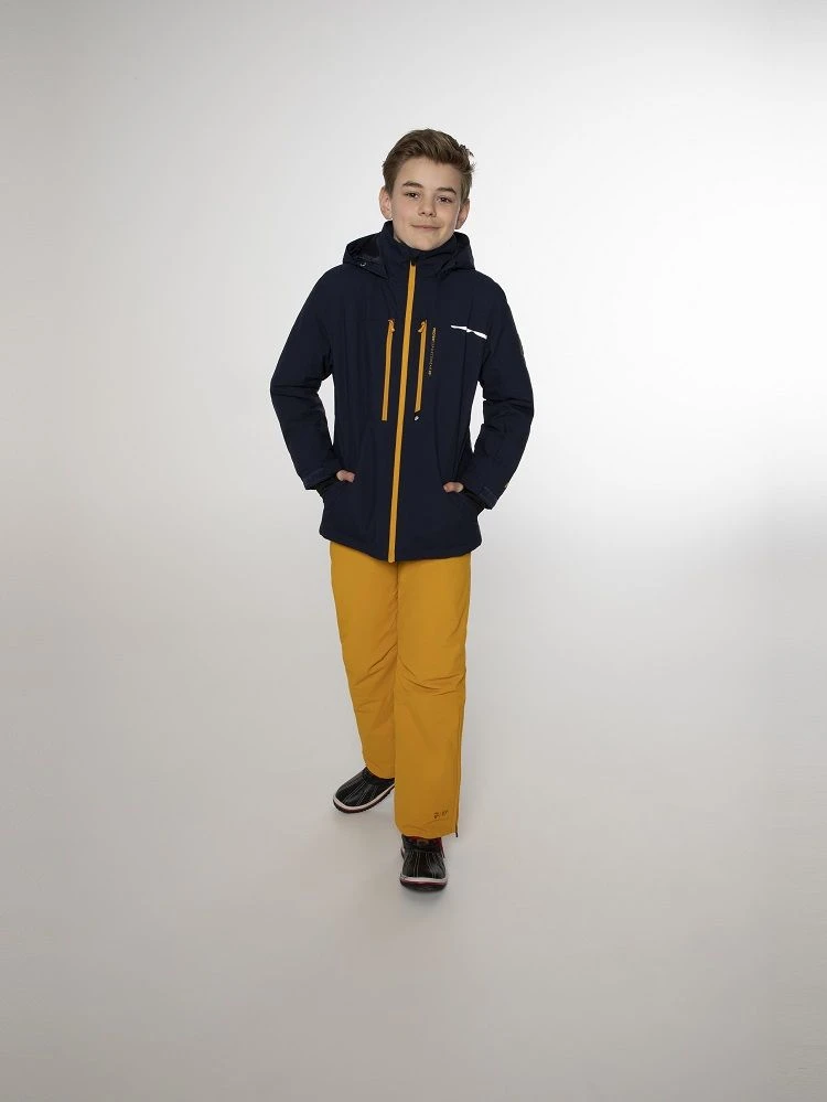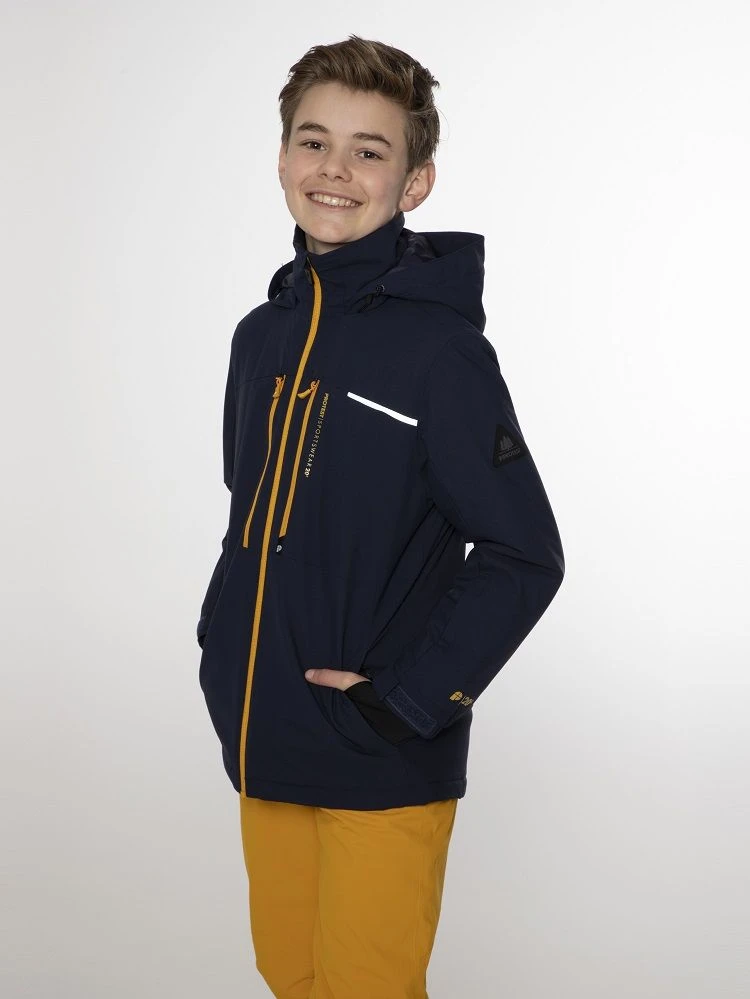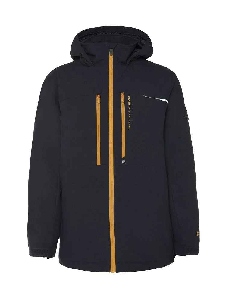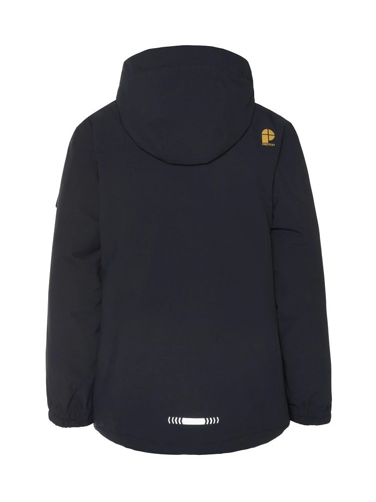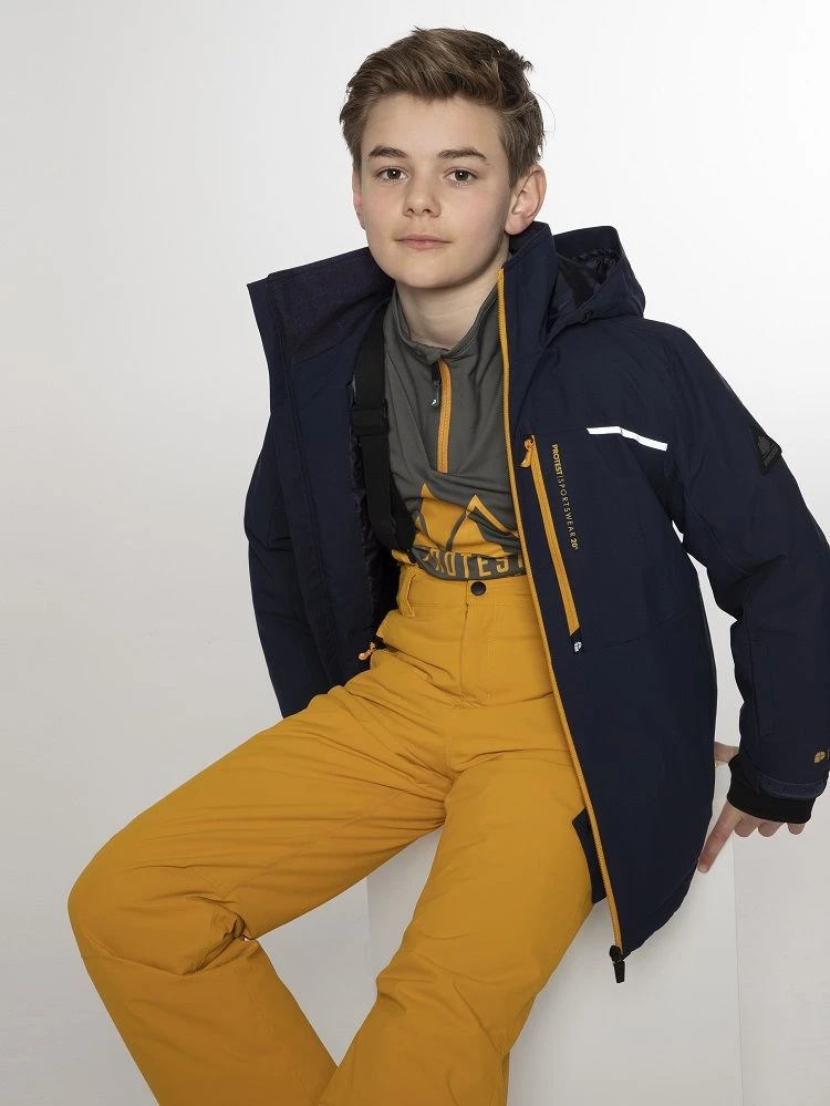 Introducing the fantastic Flynnt JR by Protest. To make long gloriousdays on the slopes, you needto stay warm and dry. This awesome jacket has a high 20K water resistance and 20g breathability.This basically means that while no water is getting in from the outside, moisture that builds up onthe inside of the jacket is allowed to escape through the fabric. The seams on the inside of thisjacket are critically taped, which is another way of helping you stay dry! This jacket is also PFC-free in an effort to reduce the detrimental effect that this chemical has on our healthand theenvironment. We use an environmentally friendly waterproofing method. The chest and sidepockets are zippered. There is a lift pass pocket at the arm. There is also a built-in waist gaiter andlycra cuffs with thumb holes at the wrists. Along the bottom hem, there is a drawstring that you canbring in to stop the cold air getting inside your jacket. There are reflective details on the jacket tohelp you be seen in the dark. The jacket for your winter adventures, the Flynnt JR by Protest.