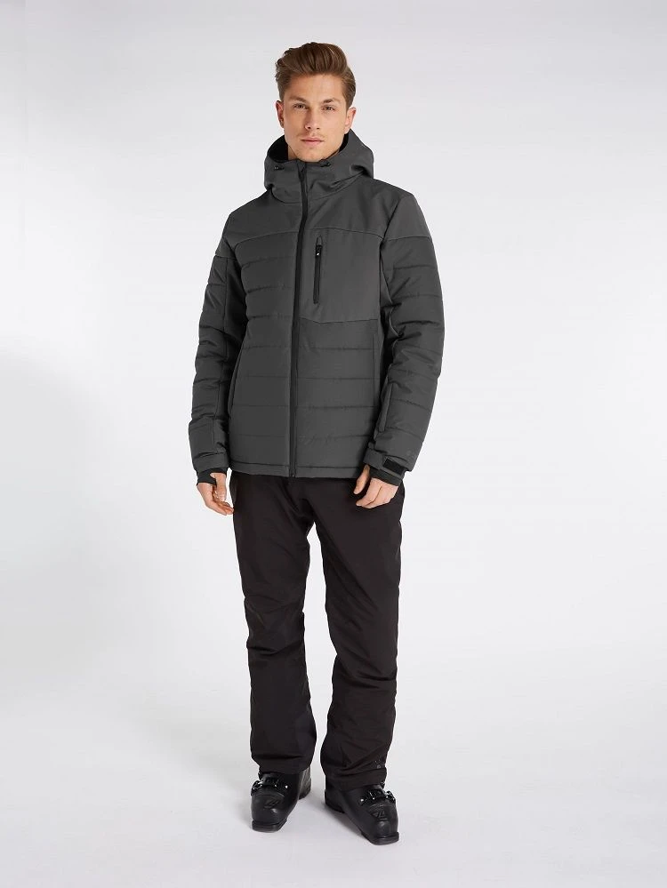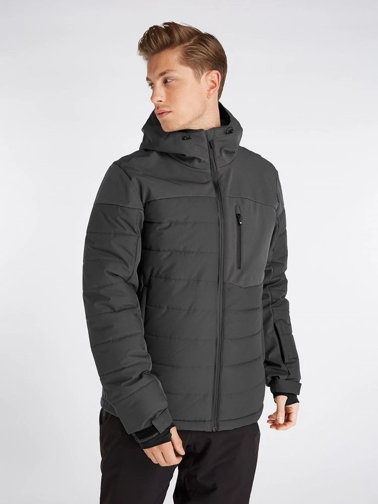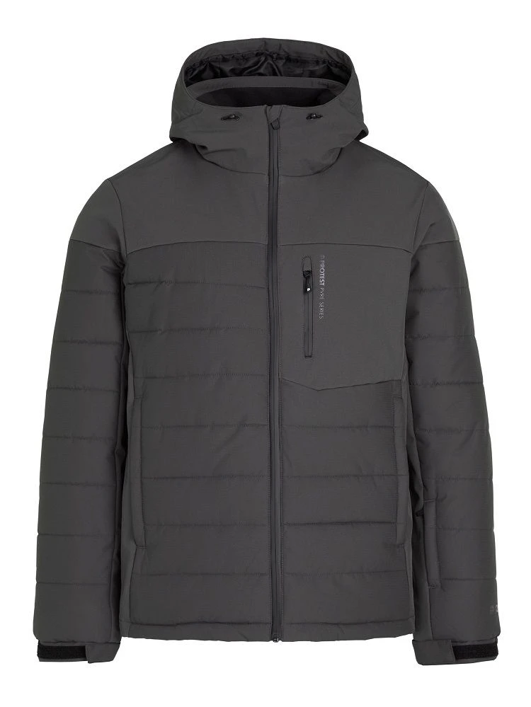 ThePrtmount features 20K water resistance, making this jacket water resistant and windproof from theoutside while moisture is wicked away from your body on the inside. This jacket is partially madefrom softshell and has a slim fit and a short length. The fabric is also PFC-free in an effort to reducethe detrimental effect that this chemical has on our health and the environment. We have used anenvironmentally friendly waterproofing method instead. Featuring colour blocking and quilted parts,there is an attached hood and ventilation zippers at the upper arm so that you can regulate thetemperature on the inside of this jacket. The zippers are water repellent. The front zipper andzipper at chest pocket are both sealed to ensure that no water leaks in from here. There’s a gogglepocket with goggle wipe. The arms are pre-shaped allowing youtotal flexibility. The jacket that willget you there, the Prtmount by Protest